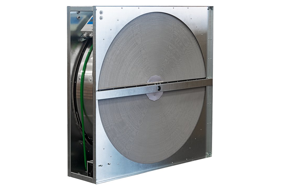 A coated rotor alternately passes through the warm, humid exhaust and the cooler, drier supply stream. It absorbs heat and water vapor from the exhaust, then releases them to the supply air on the next half-turn - without mixing the air streams.