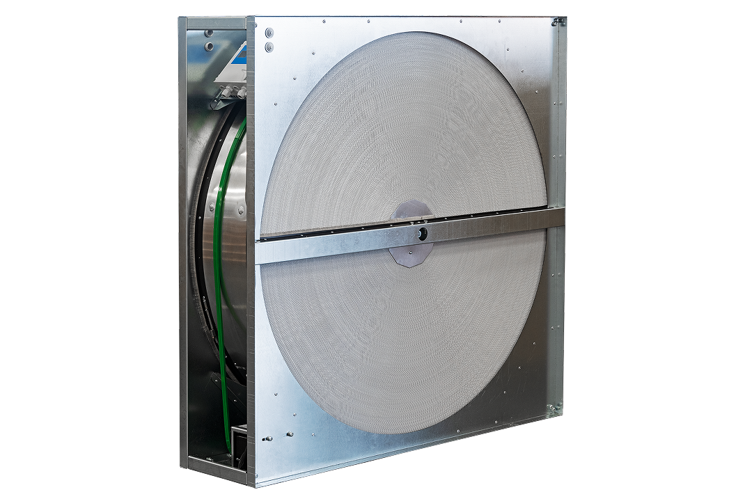 A coated aluminum rotor alternates between warm, humid exhaust and cooler, drier supply air. Its molecular-sieve sorbent (e.g., 3Å zeolite) adsorbs water vapor and heat in the exhaust stream, then desorbs them to the supply stream on the next half-turn - without air mixing - delivering high latent recovery down to low RH.