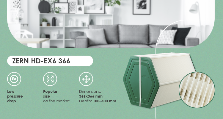 Чудові новини для всіх, хто цікавиться інноваційними технологіями в галузі теплообміну та вентиляції.З гордістю представляємо новітню розробку компанії ZERN ENGINEERING - ZERN HD-EX6 366.ZERN HD-EX6 366 - пластинчастий полістирольний рекуператор протиточного типу, що має низку унікальних переваг, які роблять його ідеальним вибором для установок різного типу та застосування (квартири, приватні будинки, котеджі, інші приміщення). 1) Знижений перепад тискуZERN HD-EX6 366 забезпечує значно менший перепад тиску, порівняно з аналогічними моделями конкурентів на ринку рекуператорів.Спеціально розроблений унікальний профіль пластин і збільшена відстань між ламелями дозволяють знизити опір повітряного потоку, за рахунок чого вентилятори припливно-витяжної установки знижують своє енергоспоживання. 2) Популярний габаритний розмірZERN HD-EX6 366 має широко затребуваний габаритний розмір на ринку рекуператорів – 366x366 мм.Новинка легко інтегрується в існуючі системи і може бути встановлена без внесення змін до конструкції установки, таким чином, замовники зможуть швидко та без будь-яких труднощів використовувати нашу модель у своїй припливно-витяжній установці. 3) Конкурентна ціна та терміни виробництваКоманда ZERN ENGINEERING пропонує високоякісні рекуператори за прийнятною ціною та у конкурентні терміни.Наша команда експертів завжди готова відповісти на запитання та надати повноцінну консультацію під час вибору, встановлення та обслуговування нашого обладнання.Впевнені, що нова серія рекуператорів ZERN HD-EX6 366 стане надійним та ефективним рішенням для різноманітних проектів.